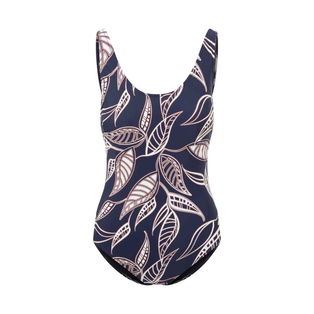 • A beautiful navy mastectomy swimsuit with elegant leaf pattern