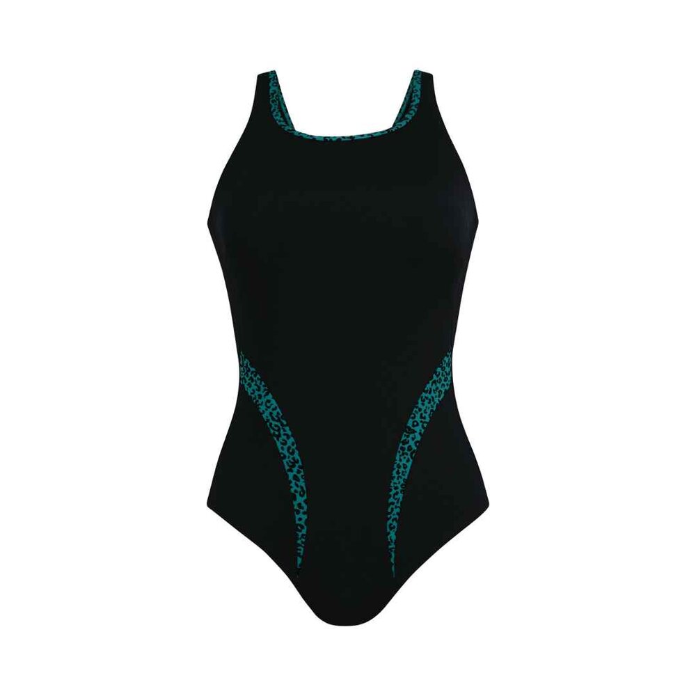 Padilla Swimsuit | Black with Blue Leopard Print Detail | Anita