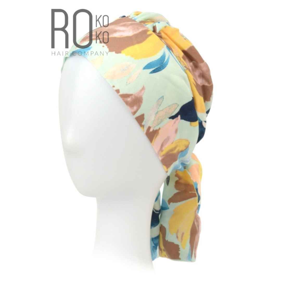 The Crocus turban is a lightweight, everyday headwear piece designed for comfortable, all day wear. It features decorative draping across the front, which adds gentle volume while ensuring the turban doesn’t cling tightly to the scalp, a thoughtful detail for those experiencing hair loss due to chemotherapy or alopecia.