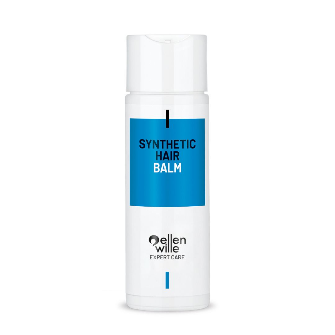 Applying the Synthetic Hair Balm Ellen Wille recommends using a hair bath. Add about half a capful to a basin of lukewarm water and leave your synthetic hair wig to soak for 10 minutes, no need to rub. Then you can simply rinse it and allow it to dry naturally, you’ll see your style and shape magically bounce back as the piece dries.